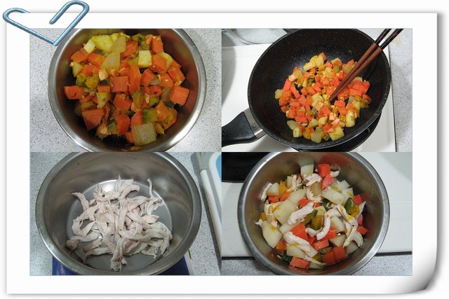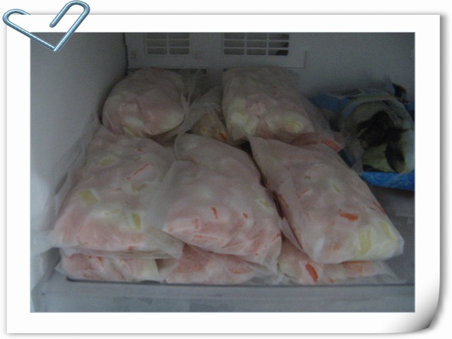 將這四種基本蔬菜切丁~適量混合冷凍在冷凍庫中保存