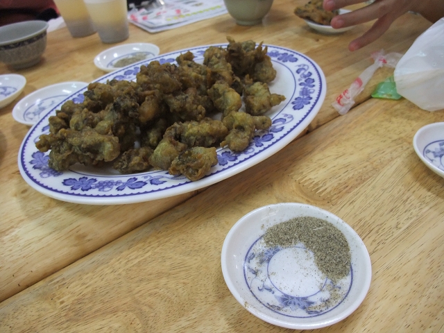 品嚐現炸新鮮的蚵仔酥和花枝炸