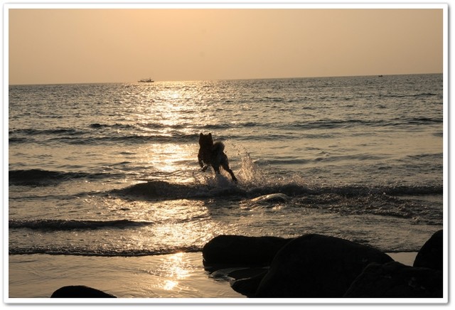 我喜歡這邊的海浪一波一波來的感覺,將人們留下的足跡一一撫平,只留下印著夕陽的沙灘。
