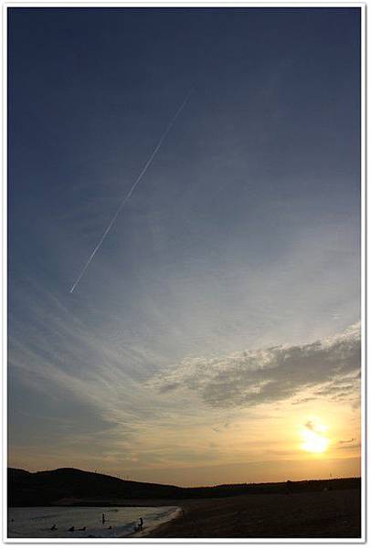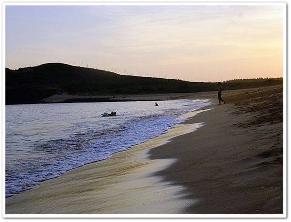 第一場夕陽秀,西嶼的網垵沙灘,伴著夕陽留下了美麗的背影。