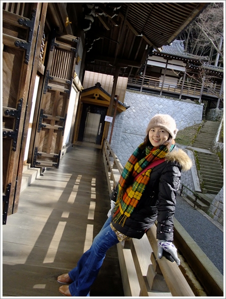 接著順著臥龍廊往上爬,到達最高處的開山堂。果然高處不勝寒啊,這裡好冷好冷,想要欣賞美景衣服還得穿夠多才行,然後在這裡我竟然把我心愛的毛帽給遺落了,老公開玩笑的安慰我說:「天氣那麼冷,帽子就留給這裡的住持保暖頭部吧!」。