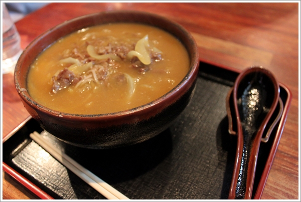 從永觀堂往哲學之道的方向走大約500公尺左右,就可以看到這間日の出うどん。本來以為平日時間不用排隊的,結果還是小小的等了15分鐘。等待的時間服務員會出來先幫客人點餐,我們一行人除了點他們有名的咖哩烏龍麵外,也點了牛丼飯,結果好像牛丼飯的評價勝過咖哩烏龍麵喔!